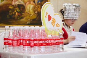 晚会现场,澎龙电池品牌视觉体系与中秋氛围巧妙融合,形成沉浸式品牌体验。舞台主背景、签到区背板等核心视觉点位均呈现“澎龙电池”主赞助商标识,强化品牌曝光。餐桌上定制水饮、物料包装等细节处融入企业VI元素,于细微处传递品牌温度。